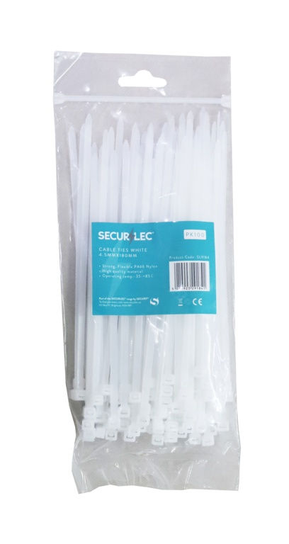 Securlec White Cable Ties - 4.5mm x 175mm Pack 100