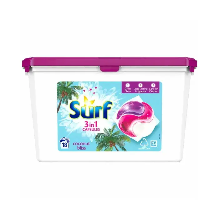 Surf 3 in 1 Coconut Bliss Laundry Washing Capsules 18 Washes